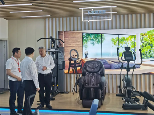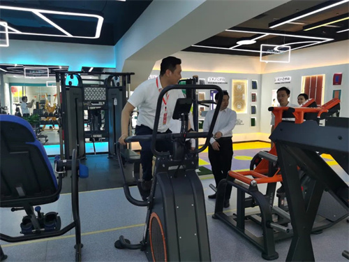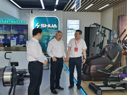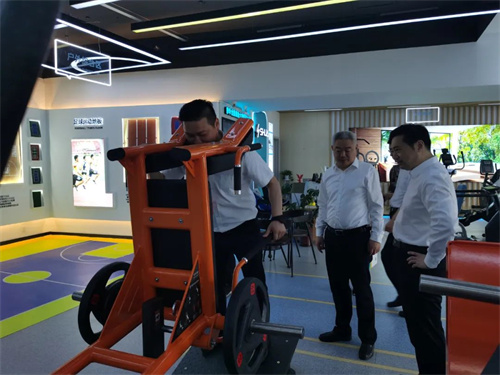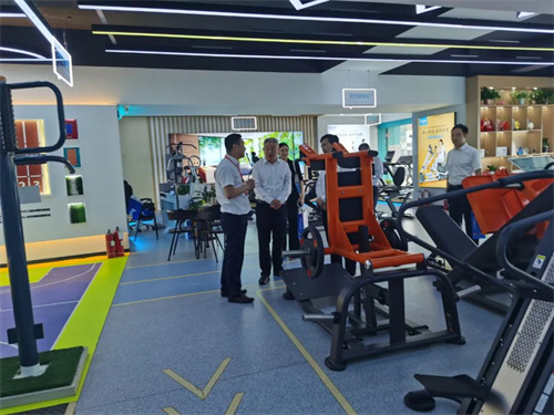 好博体育集团董事长王进华先生向王映海副市长一行领导介绍了近年来企业发展情况,并带领大家参观了好博体育集团济南省体旗舰店,详细介绍了无氧力量、心肺有氧、户外综合、私家健身、老年健身、康体器材六大健身场景区域,王进华先生还亲身示范健身器材的正确使用方法,全场景体验和具有科感的智能互动得到一行领导的充分肯定与认可,并对好博体育集团在体育产业发展中发挥的示范带动作用给予高度评价。